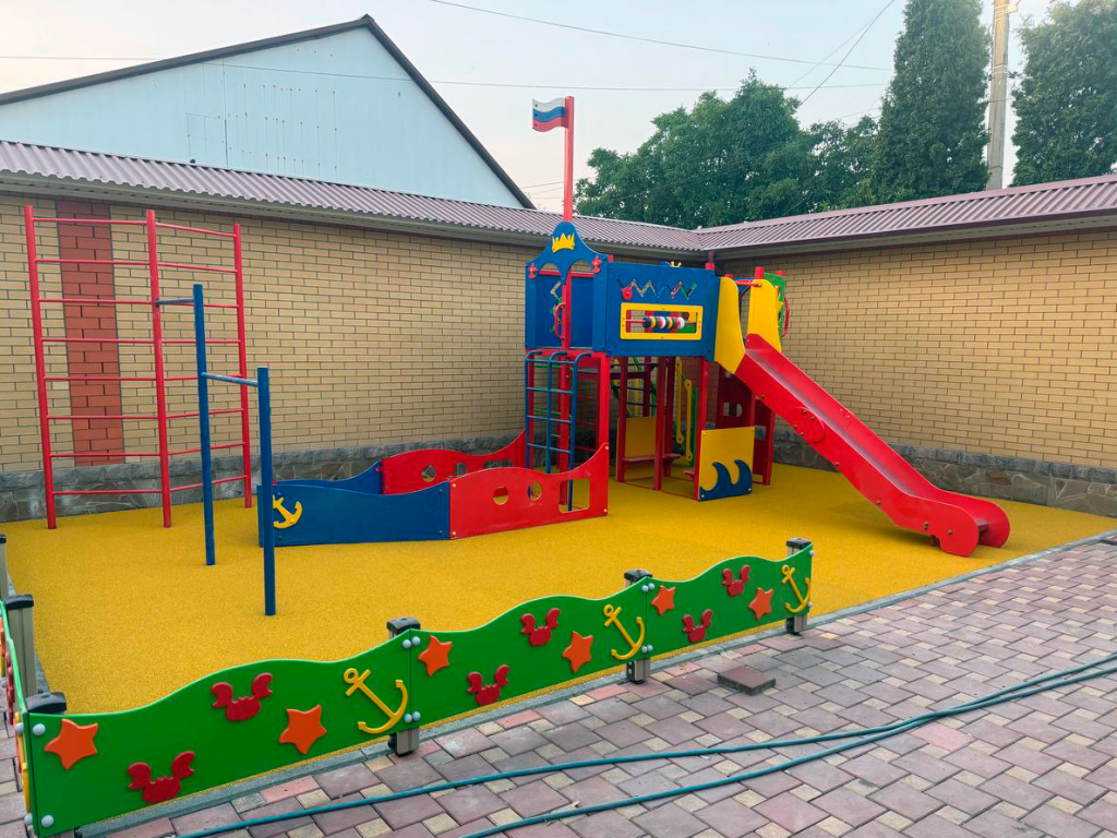 Монтажная бригада под руководством Виктора Кардашина выполнила демонтаж старого покрытия, подготовила основание и уложила бесшовное резиновое покрытие, обеспечив безопасную эксплуатацию комплекса. По ходу установки оборудования многие детали пересогласовывались на месте. Благодаря чёткой работе Камилы Ситдиковой и бригады монтажников площадка была реализована точно в срок и полностью соответствовала ожиданиям заказчиков. В итоге на территории появился яркий, безопасный и функциональный уголок для детских игр и развития.