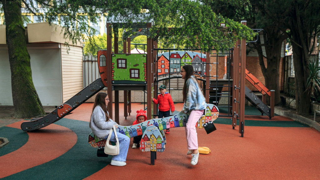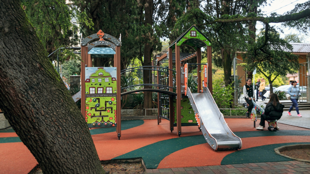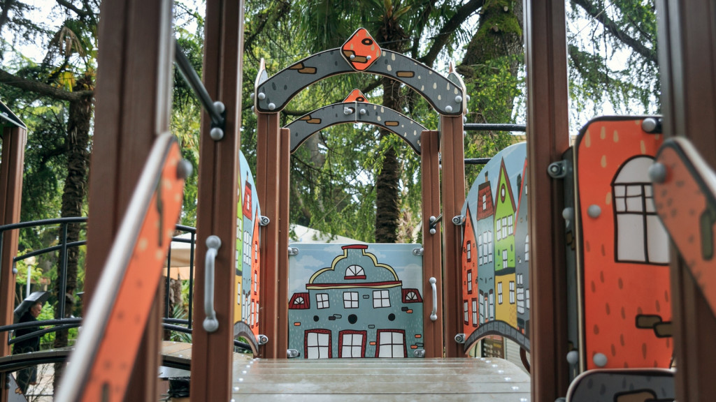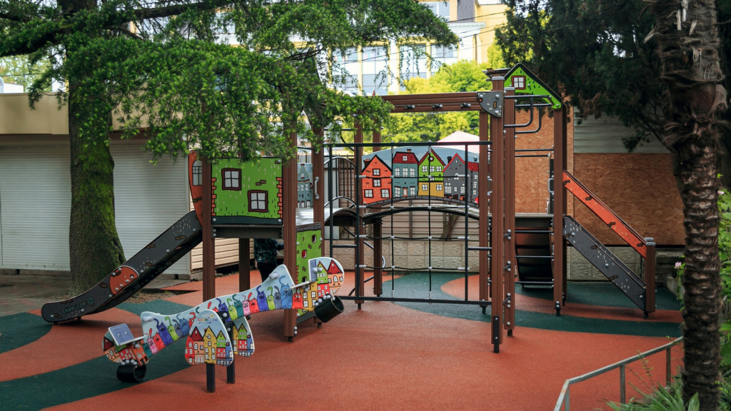 Для создания комфортного пространства для семей с детьми был заказан детский комплекс. Он украсил уличную территорию ресторана, помог организовать уголок для интересного детского досуга. Комплекс рассчитан на детей разных возрастов. Дополнительно к нему поставлены качели.