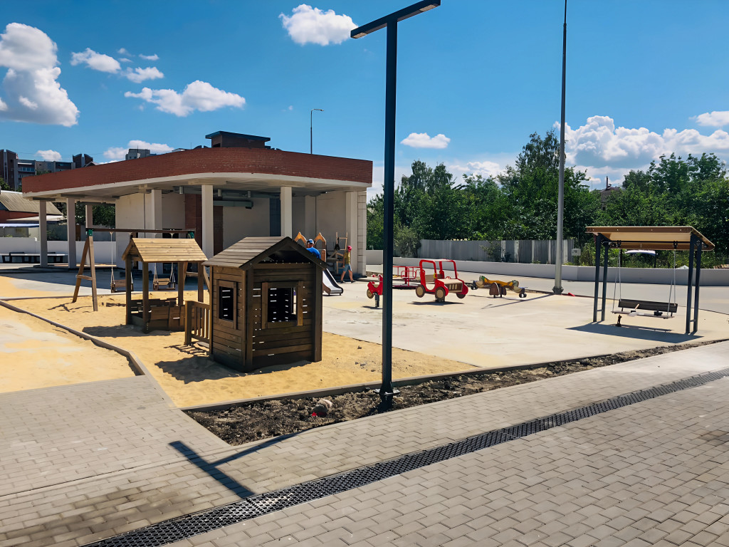 Заказ доставили в Воронеж. Наша опытная команда строителей под ключ установила элементы. Двор благоустроен, здесь уютно взрослым и интересно детям.