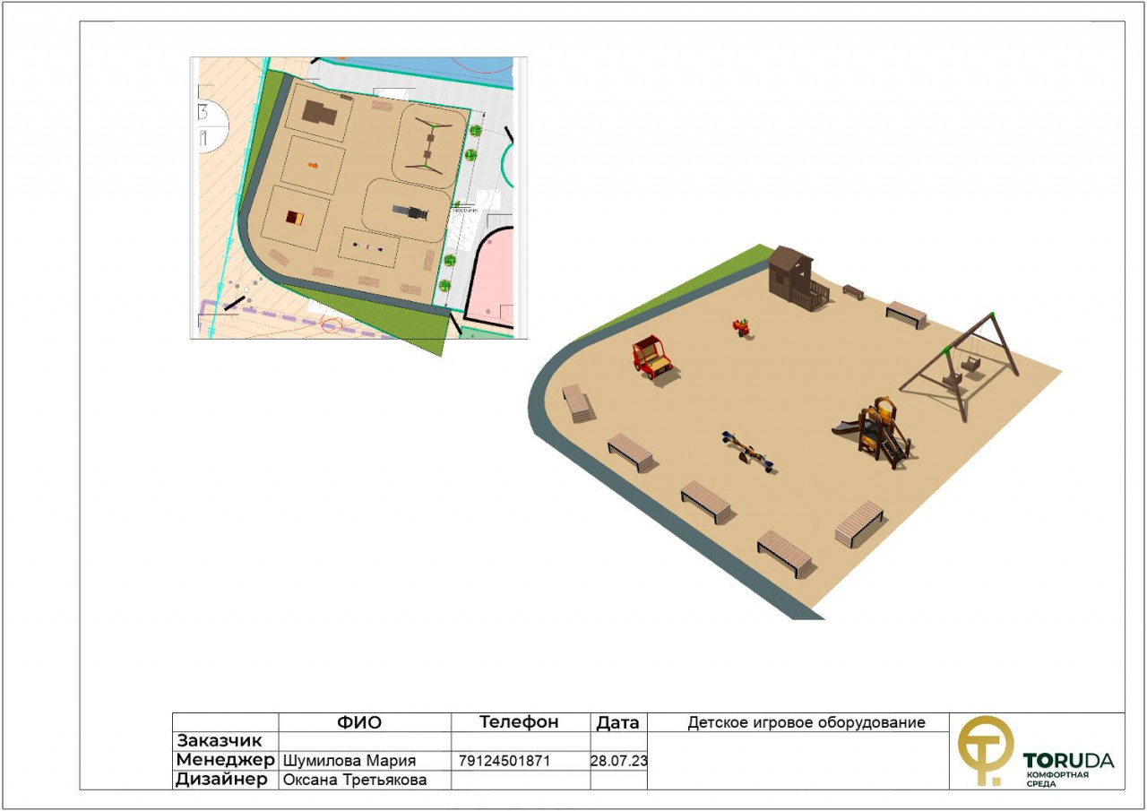 Нужно было благоустроить двор ЖК: поставить качели-диваны, скамейки для уюта и отдыха жильцов дома, установить разноплановые игровые элементы. Менеджер помогла с подбором оборудования. Дизайнеры подготовили проект.