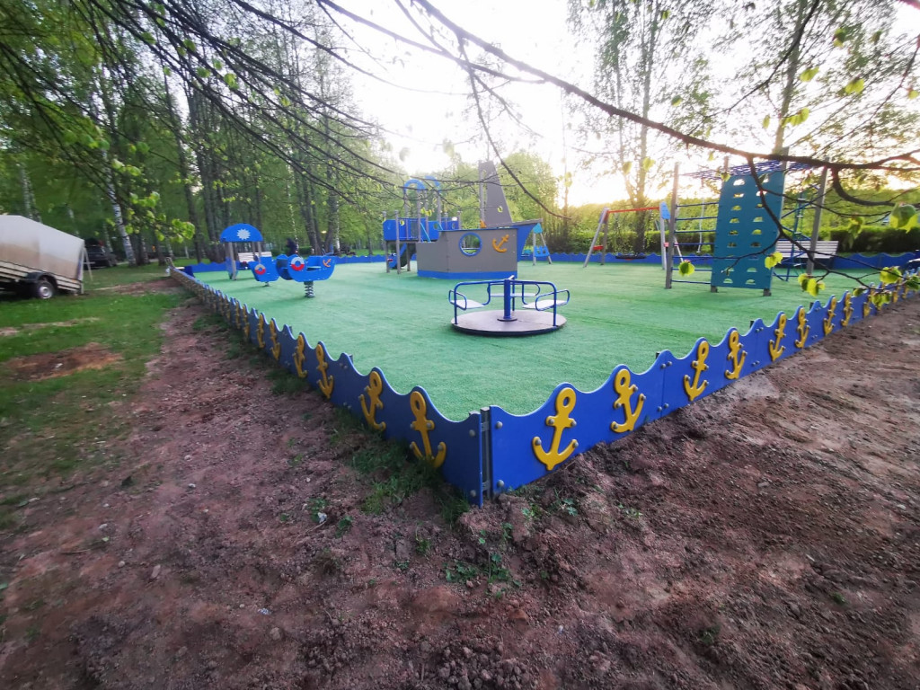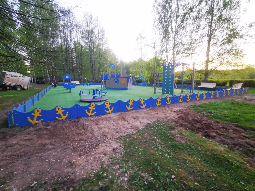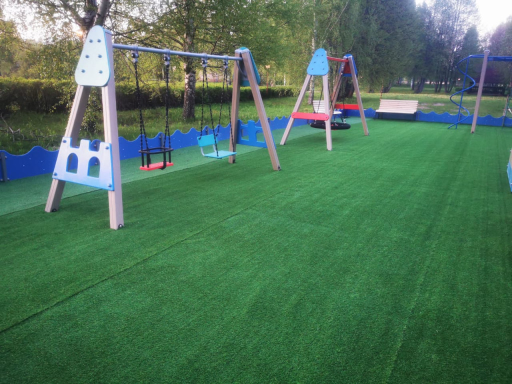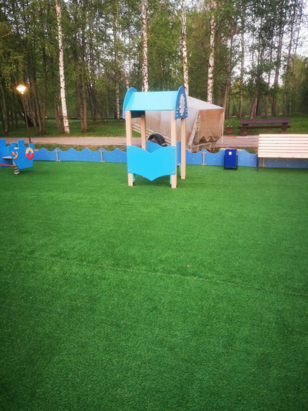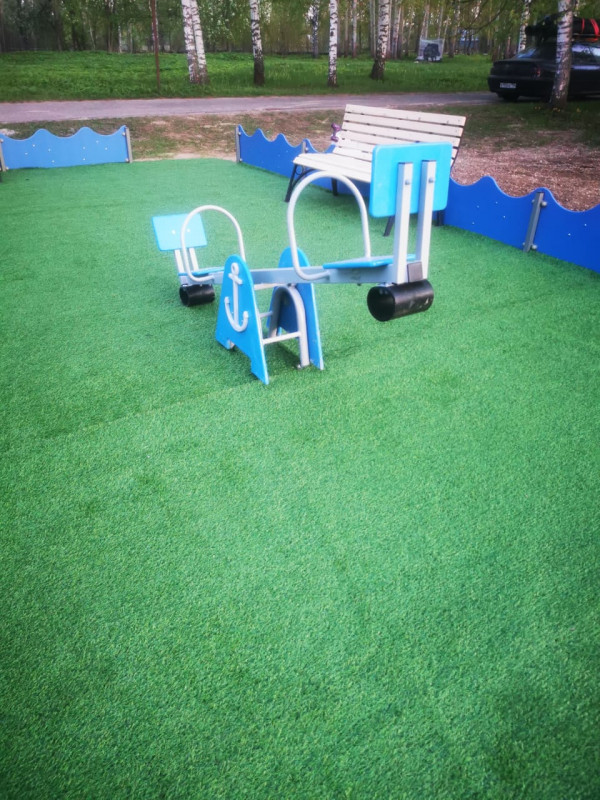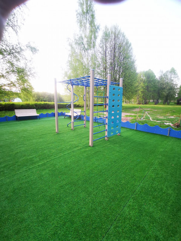 После продолжительных обсуждений с заказчиком принято решение выполнять установку оборудование зимой. Работы сделаны. Но некорректная эксплуатация оборудования сразу после монтажа, зимние холода привели к деформации некоторых спортивно-игровых элементов, газона и ограждения. При наступлении тёплой погоды оценен объём повреждений и выполнены необходимые работы по восстановлению. Все неисправности устранены. Площадка безопасна для использования, имеет привлекательный вид. Она удобна как для активного детского спорта и игр, так и для отдыха взрослых. Всё оборудование органично вписано в экстерьер санатория. Гармонирует общей стилистикой места.