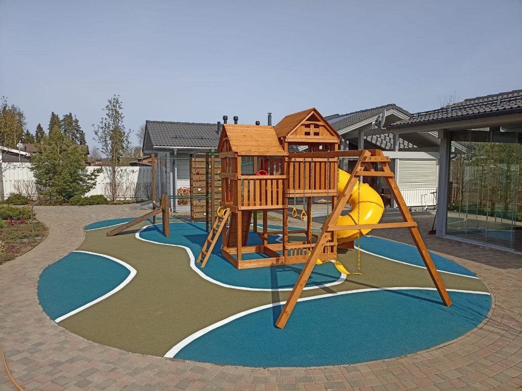 Клиент, человек из дизайнерского бюро, выполняющий заказ для частного лица, пришёл с готовым запросом. Он выбрал товары на нашем сайте и закупил их. Высокий детский и спортивный комплексы, а также удобная лавочка гармонично вписались в проект. Наши специалисты были приглашены для сборки и установки. Заказчик остался полностью доволен, поскольку удалось достичь полного взаимопонимания между сторонами и их интересами. Дизайнер-клиент, работавший с нашим менеджером получил свои 5 % после сдачи объекта.