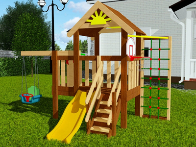 Игровая площадка Юта 1 – это одна из самых маленьких по габаритам площадок, но при этом сочетающих в себе множество различных зон – качели, горка, канатная сетка и т.д. Такая конструкция подойдет как для установки в помещении (дома), так и для улицы, благодаря специальной обработке древесины. В детской она не займет много места, зато принесет много пользы для детей. Такие занятия способствуют гармоничному физическому развитию.