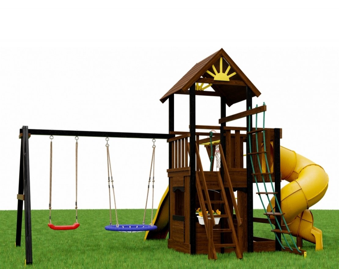 - Купить детскую площадку Дакота 3 стоит за ее долговечность и безопасность. Все детали изготовлены из надежных износостойких материалов.