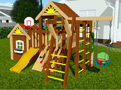 Юта 3 – это детская площадка для малышей, в которой гармонично сочетаются различные спортивные зоны и развлекательный домик. Последний особенно нравиться малышам.