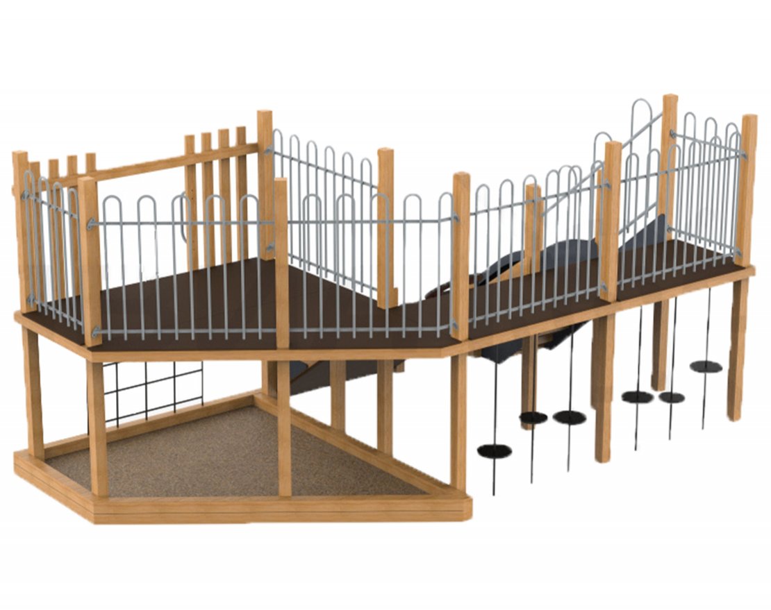 Игровой комплекс TORUDA Эко Шафран предназначен для организации детского досуга и физического развития на детских площадках, в детских садах, школах, парках, дворах и местах отдыха. Изделие представляет собой сборно-разборную конструкцию с повышенными свойствами по водо - и износостойкости.