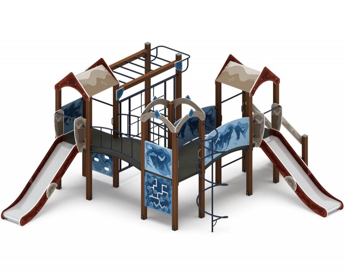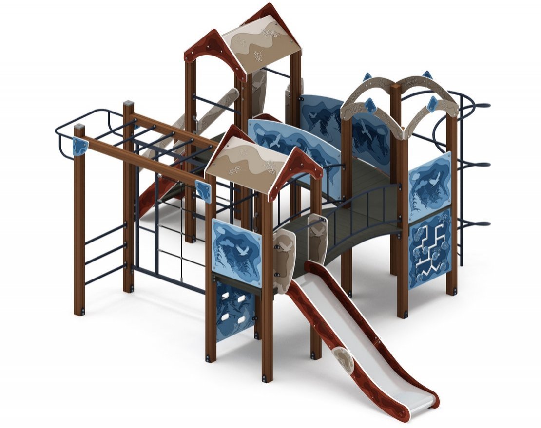 Элементы из металла имеют плавные радиусы закругления и тщательную обработку швов. Для покрытия деталей из стали используется антикоррозийное, экологически чистое двойное порошковое окрашивание, обладающее стабильностью цвета и хорошей устойчивостью к старению в атмосферных условиях.