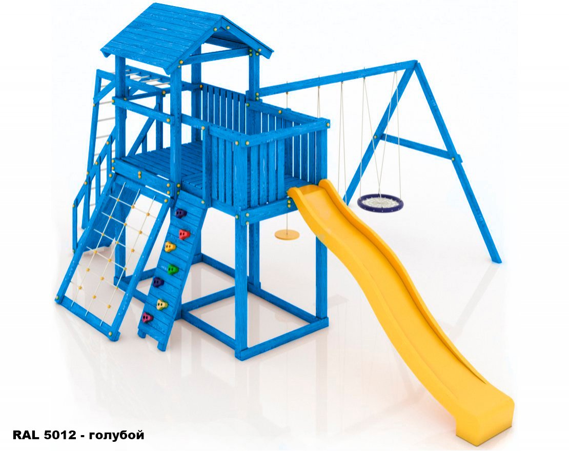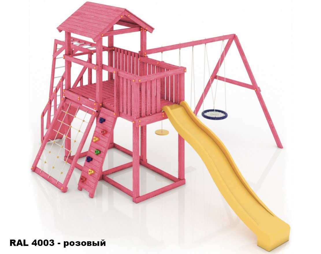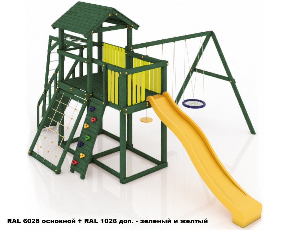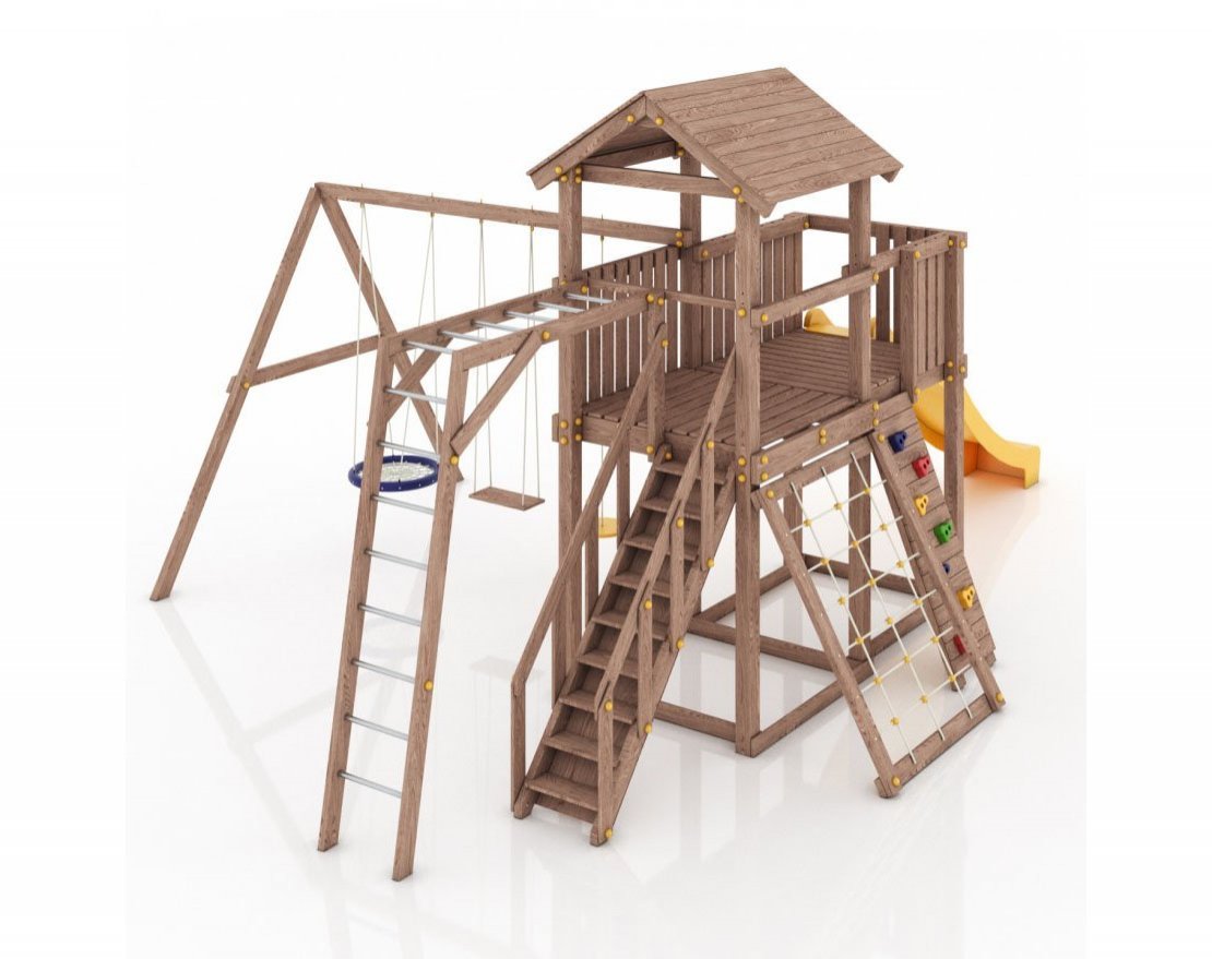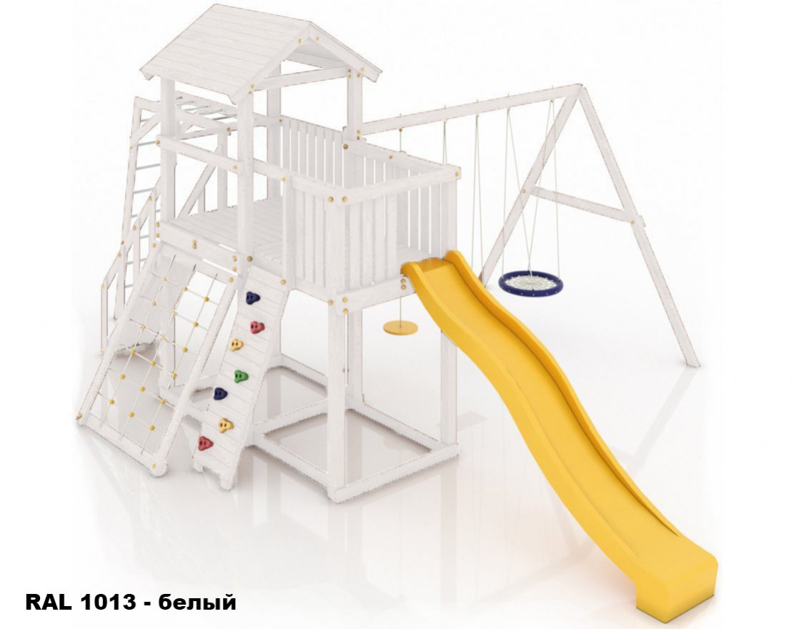 Максимально возможная комплектация в сочетании с качелями-гнездом. Детская площадка в полной комплектации позволит вашим детям разнообразить свои игры на свежем воздухе, а так же пригласить своих друзей для веселого времяпрепровождения. Места хватит всем!