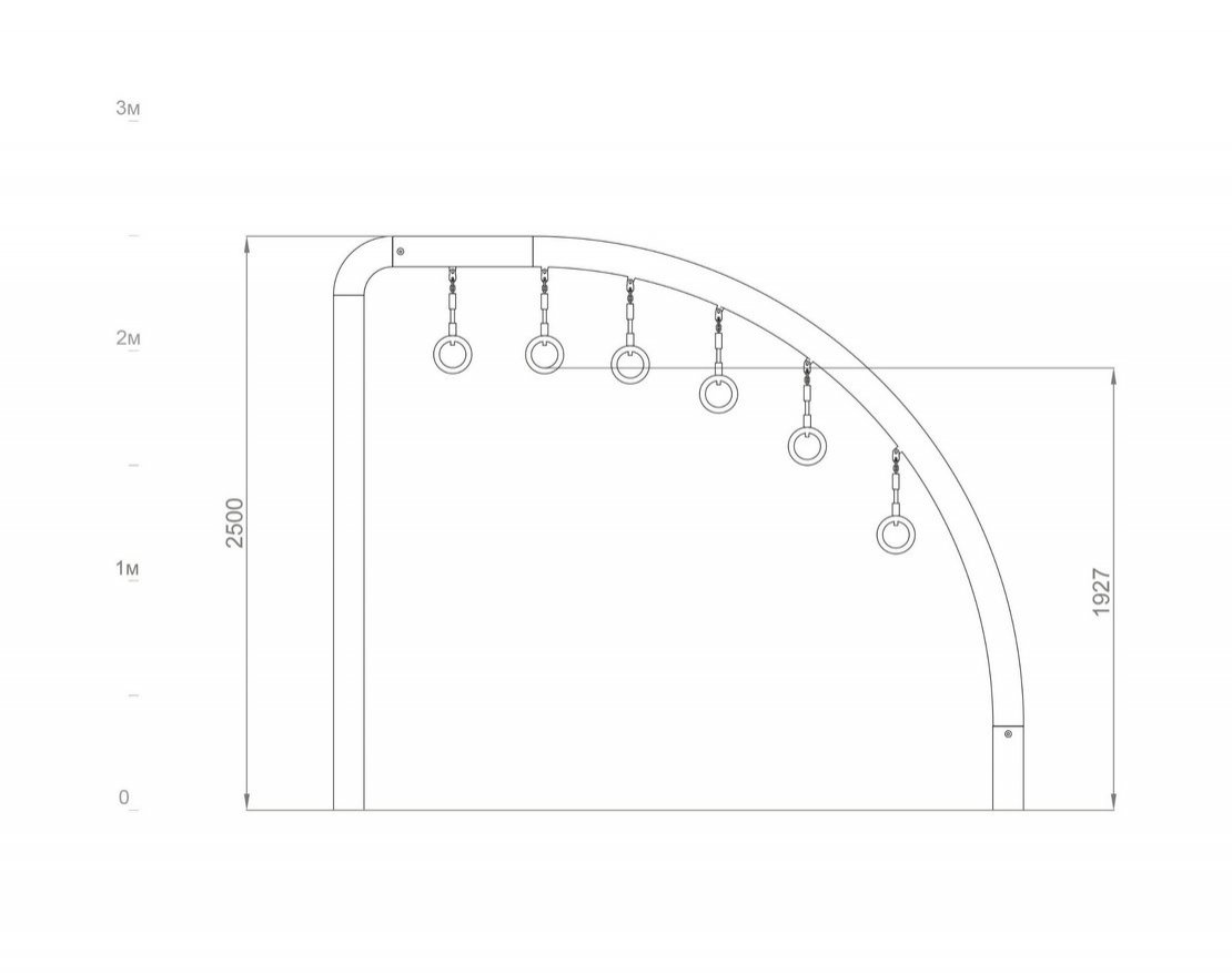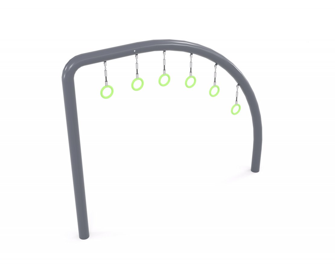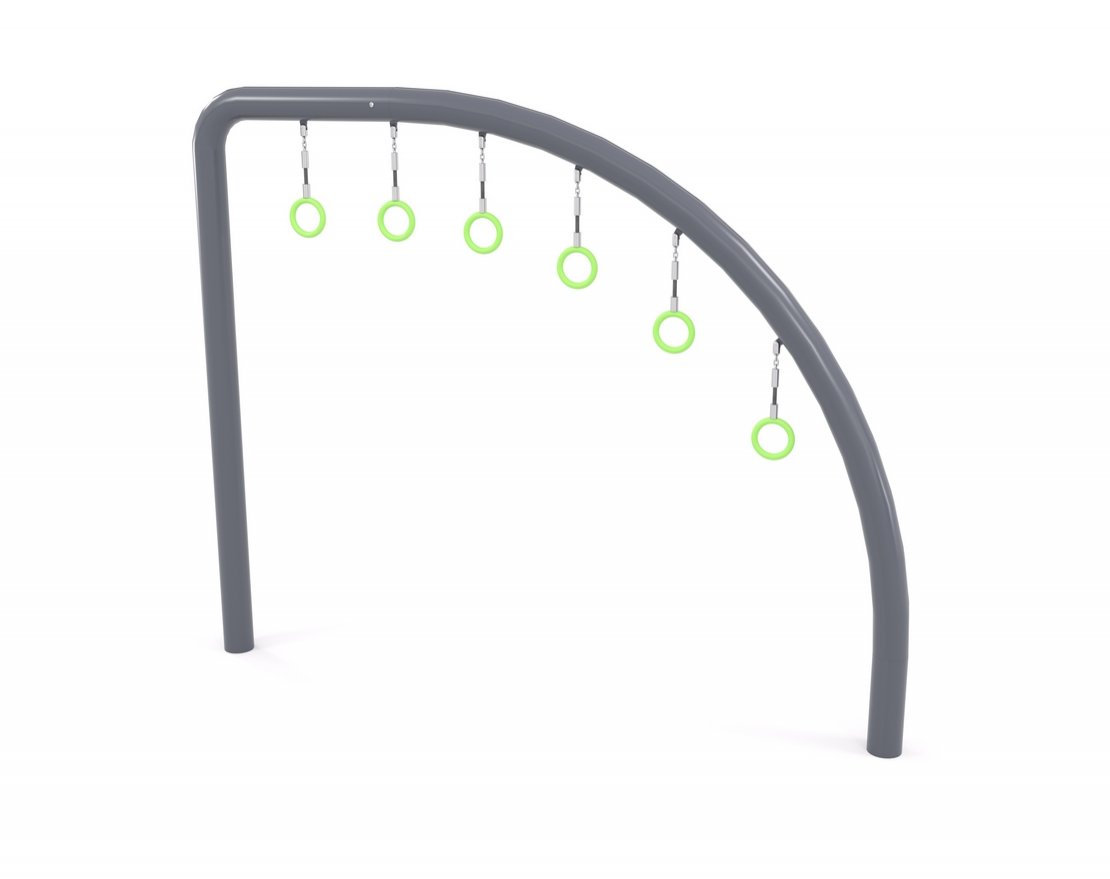 Представляет из себя изогнутую металлическую конструкцию, состоящую из гимнастических колец на подвесах.