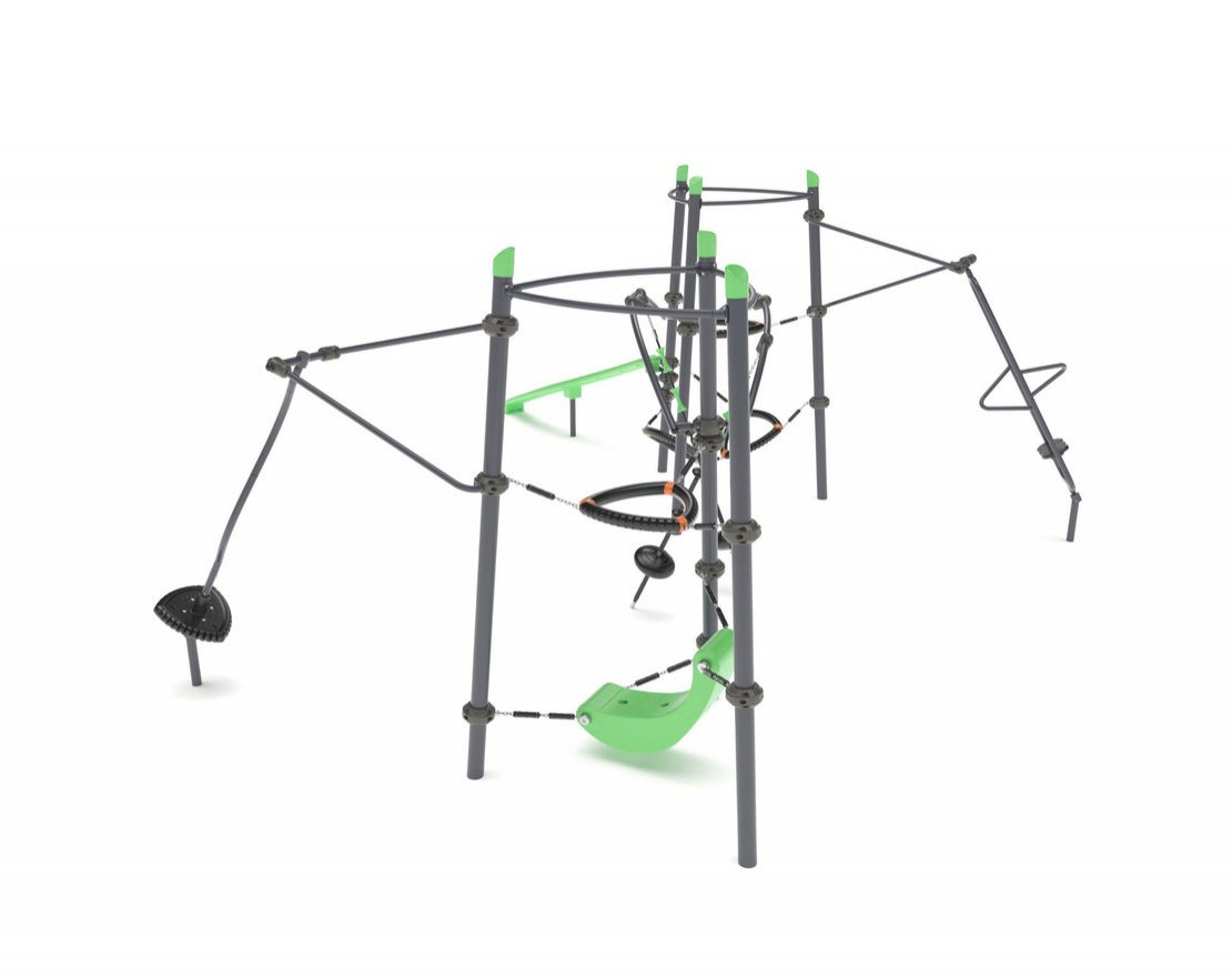 Представляет собой конструкцию, состоящую из элементов, направленных на развитие различных групп мышц. Комплекс оснащен трубами для лазания, канатными стропами, пластиковыми уступами, лазалками и экстремальной вертушкой.