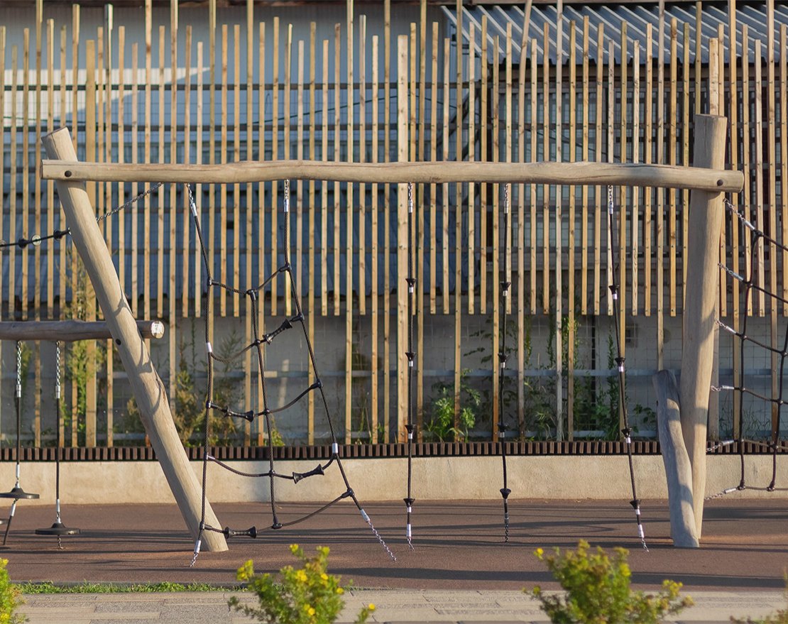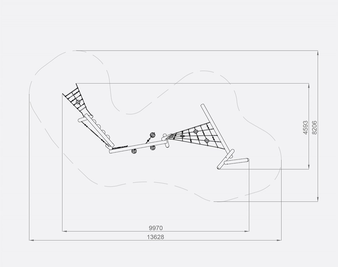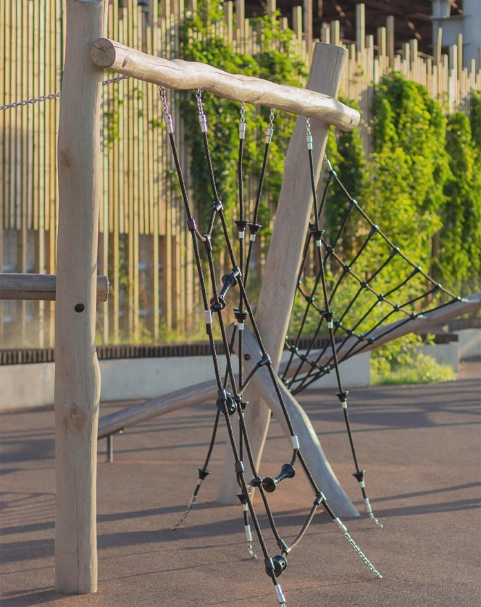 Представляет собой полосу препятствий. Состоит из опорных стоек, перекладин, канатной сетки и строп с уступами.