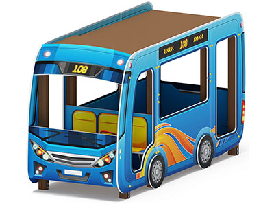 Состоит из 4-х деревянных стоек из клеёного бруса 100х100, объединённых бортами, стилизованными под кабину автобуса. Габариты боковых бортов 1000х1650, капота – 500х1000. Капот украшен фарами и радиатором. В кабине имеется пол (на отм 0,300 от планировочной отм земли) и крыша из ламинированной антискользящей фанеры толщиной 18 мм, размерами 1000х750. Кабина оснащена лавочкой, на панели приборов есть руль. Вход оснащён двумя ступенями из ламинированной антискользящей фанеры толщиной 18 мм.