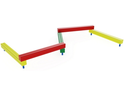 Бум выполнен из клеёного бруса не более 100х100 мм, опирающегося на стальные опоры из трубы диаметром 32 мм. Брус окрашен стойкими к ультрафиолету и истиранию красками красного, зеленого и желтого цвета. Металл покрыт полимерными красками.