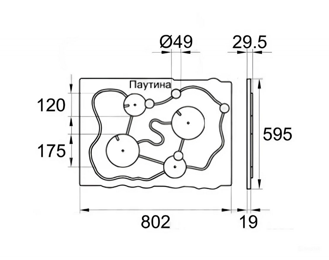Панель состоит из игрового поля, вращающихся дисков и бегунков. Задача игры заключается в передвижении бегунков по полю. Конструкция рассчитана для развития мелкой моторики у детей.