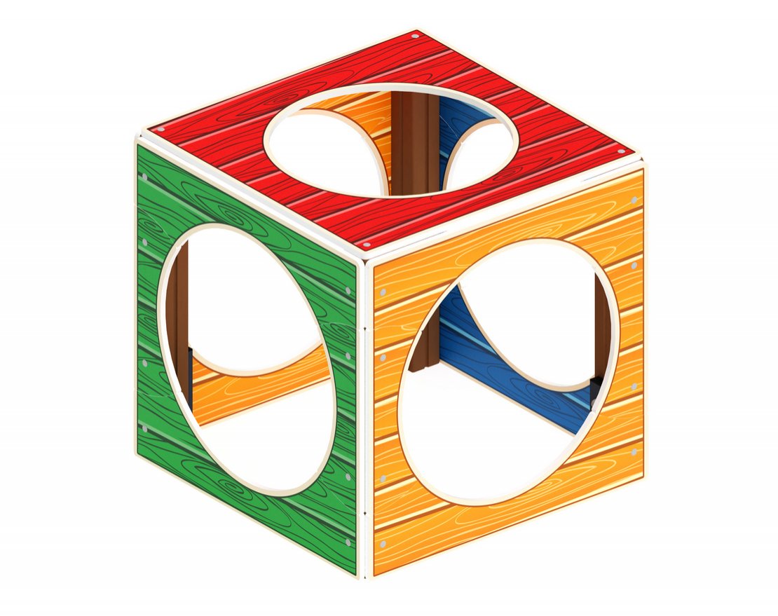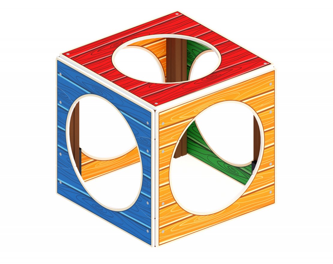 Предназначен для того, чтобы удовлетворить исследовательский интерес малышей. Маленьким деткам непременно захочется залезть внутрь и увидеть мир изнутри этого красочного кубика.