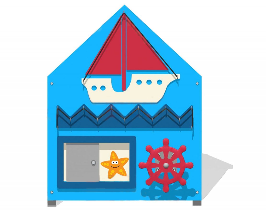 Игровой щит предназначен для дополнения прогулочной площадки детского сада. Это изделие насыщено интерактивными элементами, позволяющими развивать мелкую моторику.