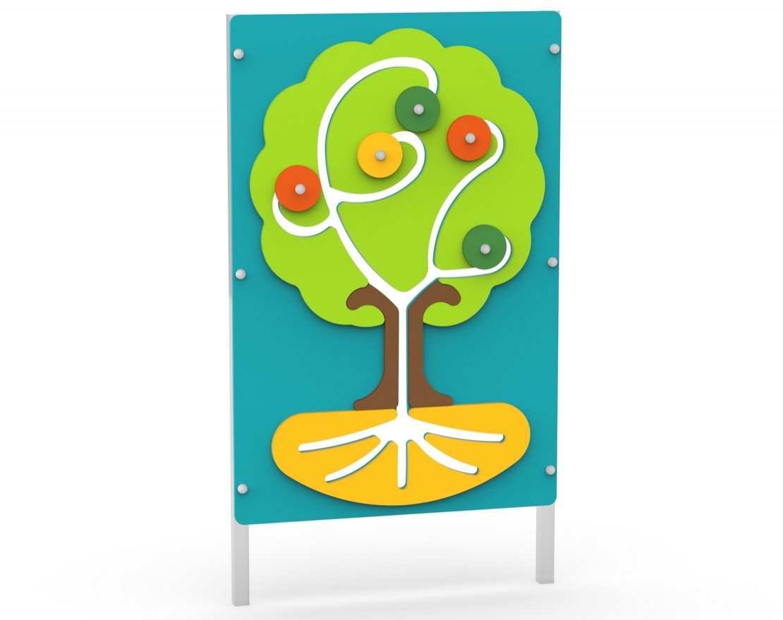 Игровой стенд предназначен для развлечения и развития детей, устанавливается на детских площадках, в парках, школах, детских садах и других местах детского отдыха. Игровой стенд представляет собой 2 опорные стойки и панель с интерактивными элементами.