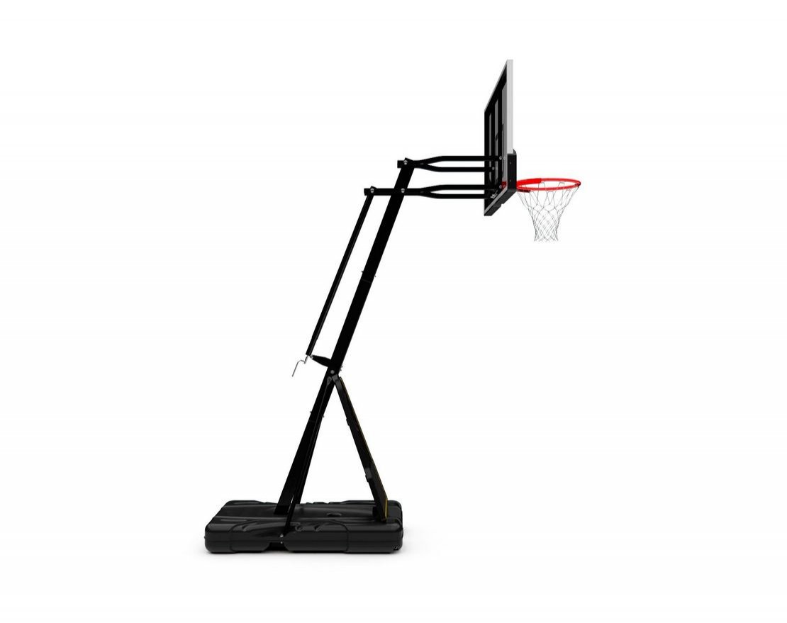 Портативная баскетбольная стойка совмещает в себе мобильность и обеспечивает отскок мяча, как на профессиональной площадке. Благодаря усиленной конструкции удалось добиться увеличенного вылета щита, при сохранении компактности размещения. Он регулируется в диапазоне от 230 до 305 см, имеет защитное покрытие Poly Pade в нижней части. В основание стойки (объем 114,7 л) необходимо залить воду или засыпать песок в качестве утяжелителя.