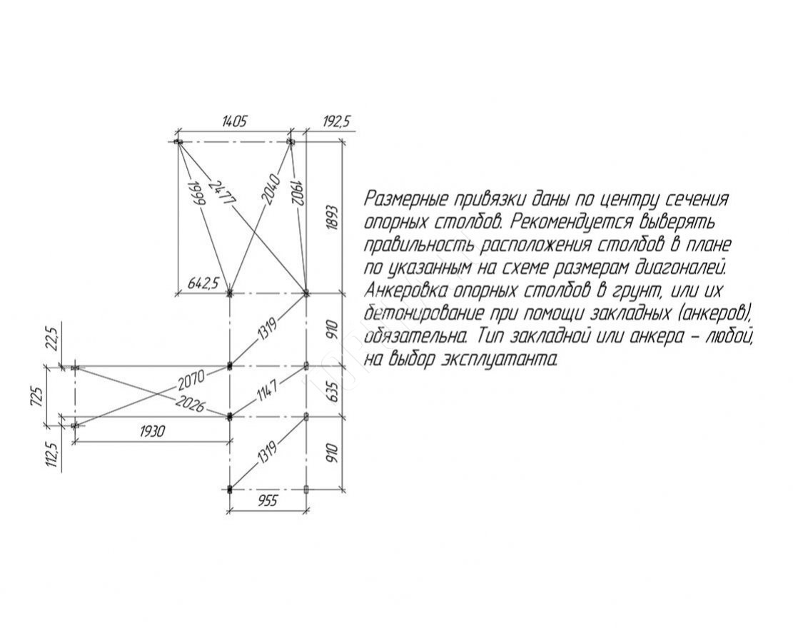 Для установки данной площадки рекомендуется закрепить её анкерами (8 шт). Анкера в комплект не входят, приобретаются дополнительно.