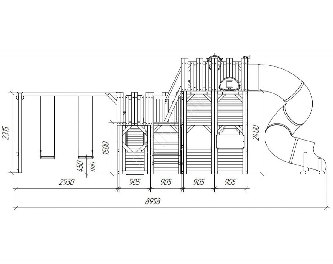 - Двухуровневая конструкция превращает площадку в увлекательный лабиринт с множеством маршрутов для исследования.