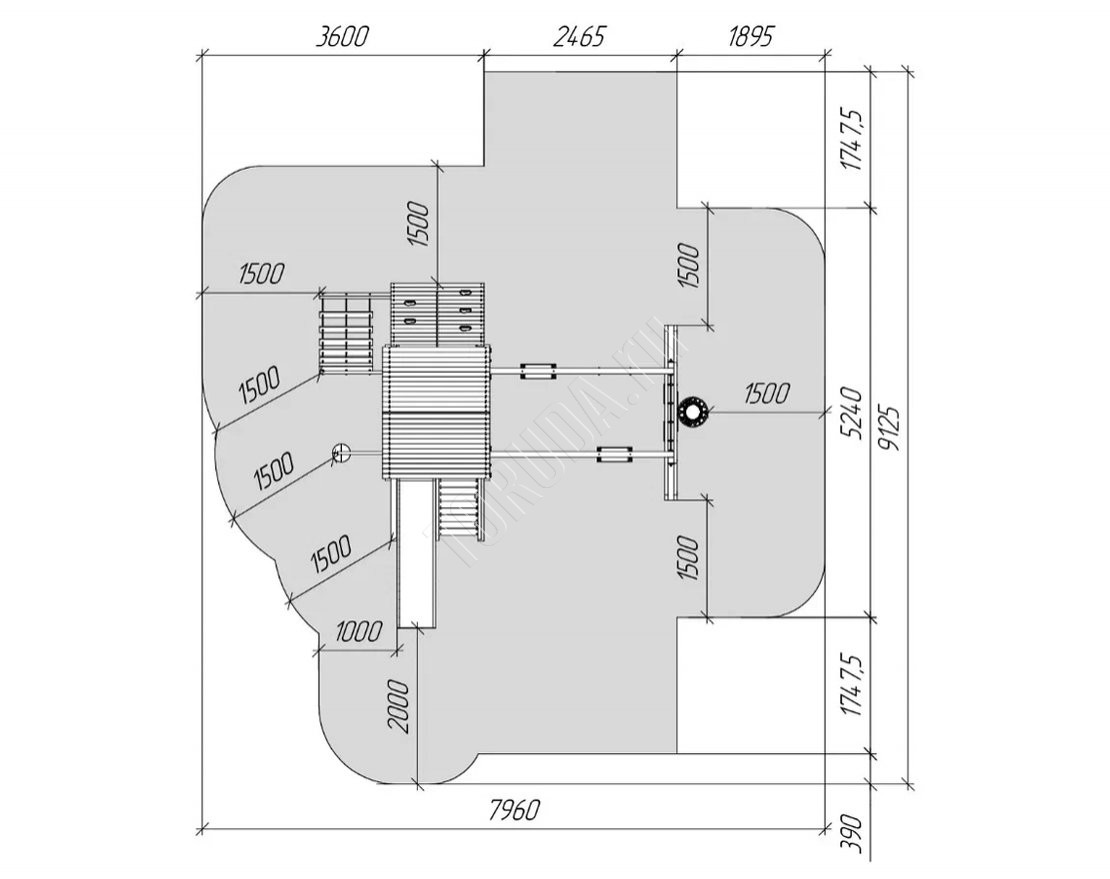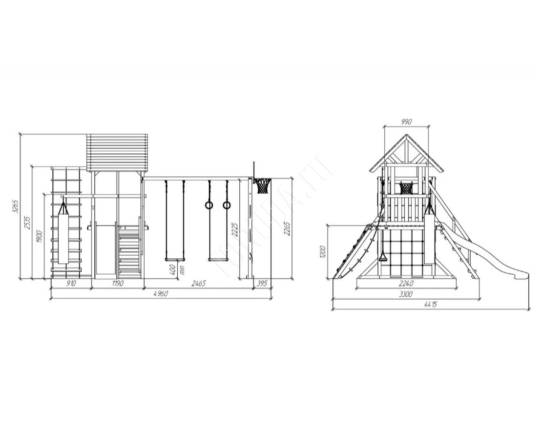 - Игровая башня с крышей создаёт укрытие от солнца и осадков, обеспечивая комфорт во время игр.