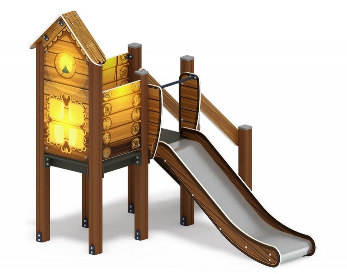 Скат горки шириной 530 мм, выполнен из нержавеющей стали толщиной 1,5 мм, и состоит из цельного листа, борта выполнены из влагостойкой фанеры толщиной 24 мм, кромки фанеры тщательно шлифованы, борта окрашены с нанесением принта. Опорный каркас горки выполнен из профиля 40х25 мм и труб диаметром 32 мм (металл имеет плавные радиусы и тщательную обработку швов, покрыт порошковой краской красного цвета).