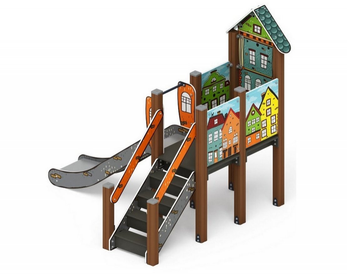 Элементы из металла имеют плавные радиусы закругления и тщательную обработку швов. Для покрытия деталей из стали используется антикоррозийное, экологически чистое двойное порошковое окрашивание, обладающее стабильностью цвета и хорошей устойчивостью к старению в атмосферных условиях.