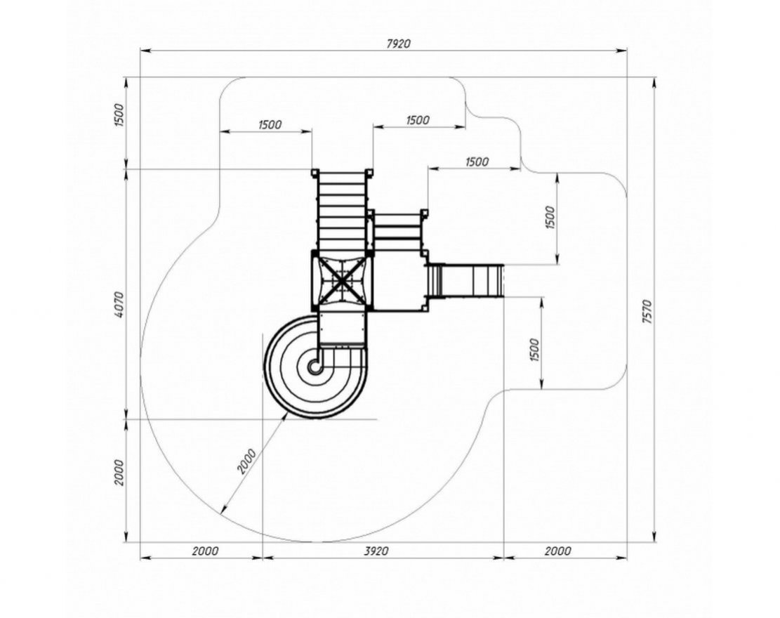 - Скат горки: H=750 (металлический скат) / H=2000 (винтовой скат)