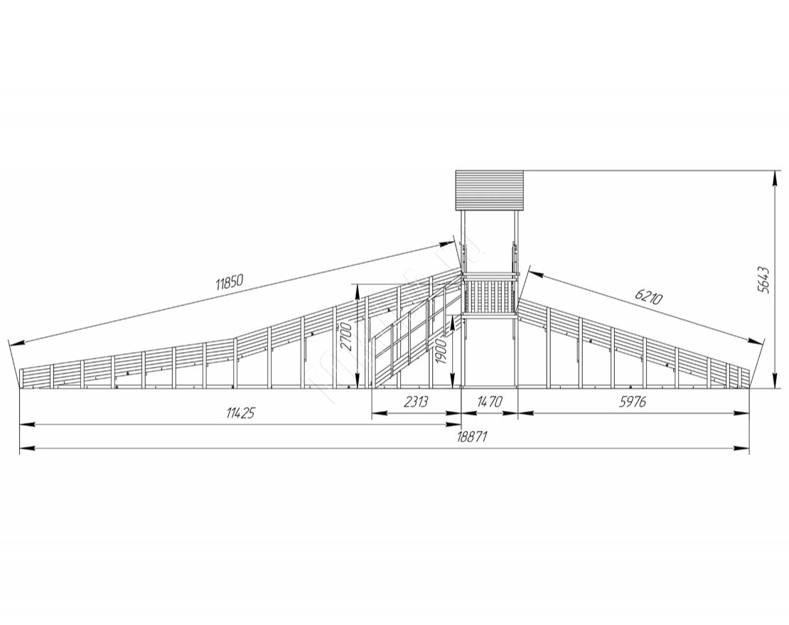 Конструкция тщательно спроектирована и выполнена из качественных материалов, что гарантирует безопасность и долгий срок службы. Каркас изготовлен из надежного клееного бруса, а в качестве защитного покрытия использован лакокрасочный состав с разрешающим сертификатом для применения на детских площадках.