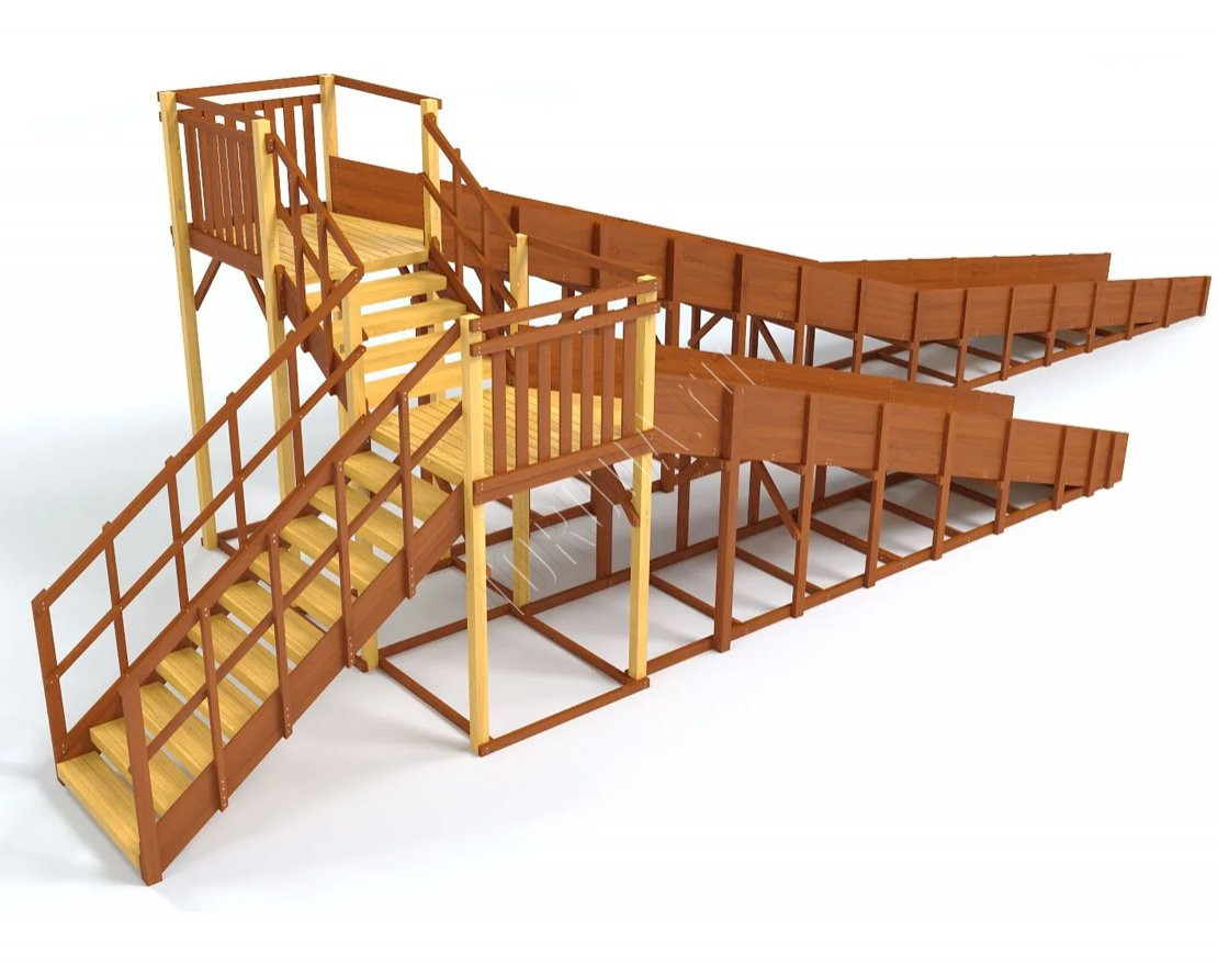 Уличная деревянная горка «TORUDA Север» - 9 предназначена для зимних развлечений. Этот игровой комплекс позволит детям разных возрастов весело и активно проводить время на свежем воздухе.