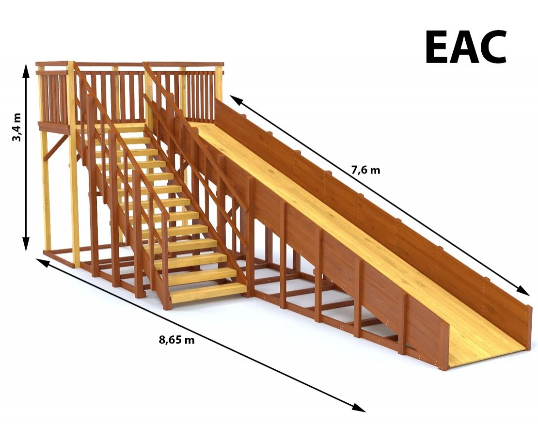Комплекс представляет собой достаточно высокую горку. Подходит для частного домовладения, дачного участка или коммерческого применения - например, в домах отдыха, детских лагерях. Модель прослужит вашим детям долгие годы благодаря качеству материалов.