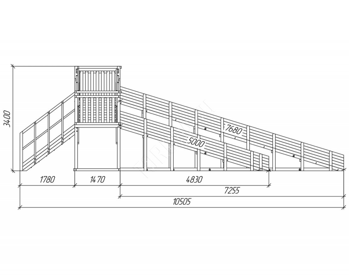 Большое внимание уделено деталям: углы имеют скругления, болты и другие крепежные элементы спрятаны под заглушками. Продуманная конструкция ступеней, высокие перила и страховочные ограждения делают наши площадки удобными и безопасными.