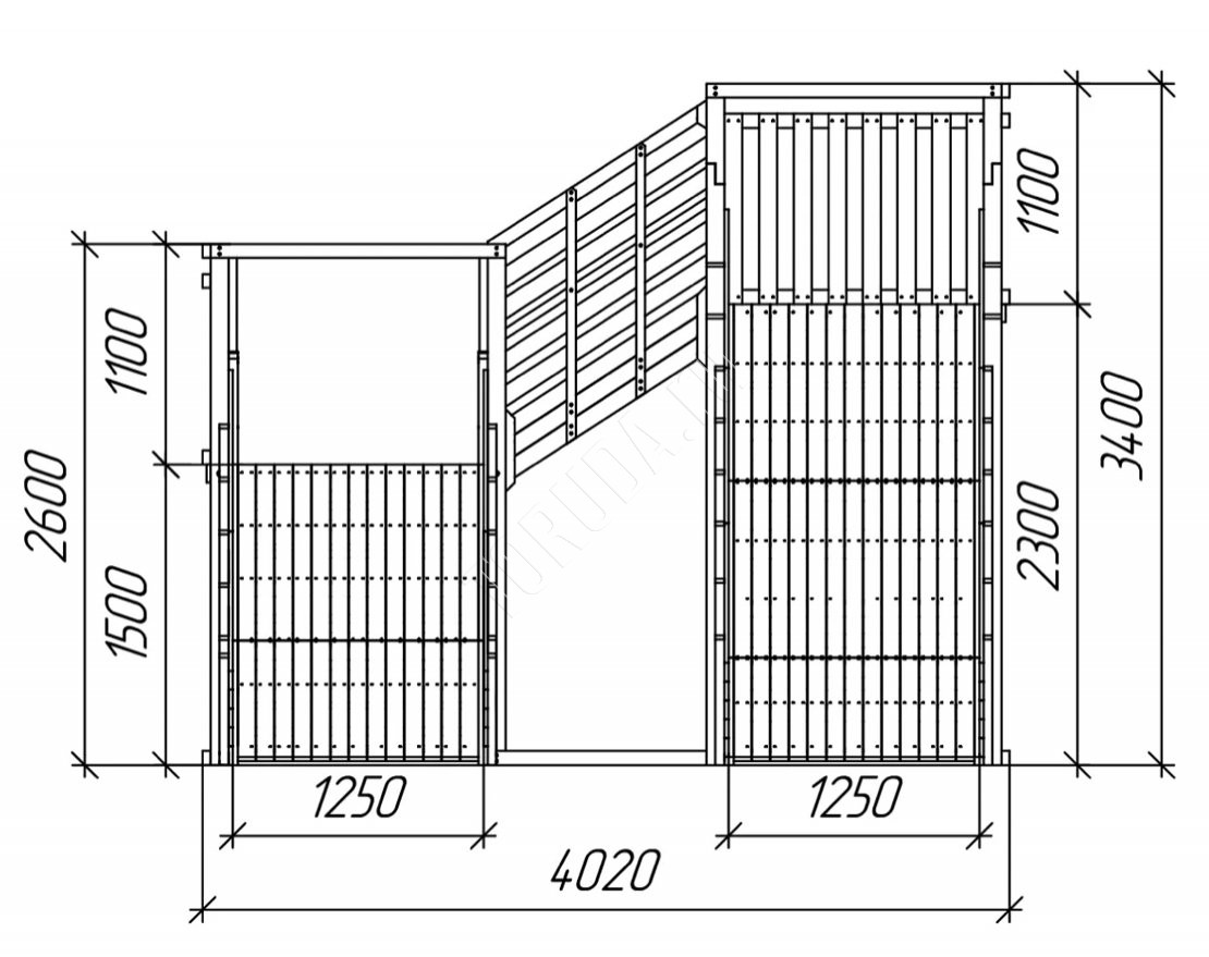 Каркас конструкции собран из клееного бруса сечением 90 х 90 мм. Благодаря технологии производства он не меняет своих размеров и формы весь срок службы.
