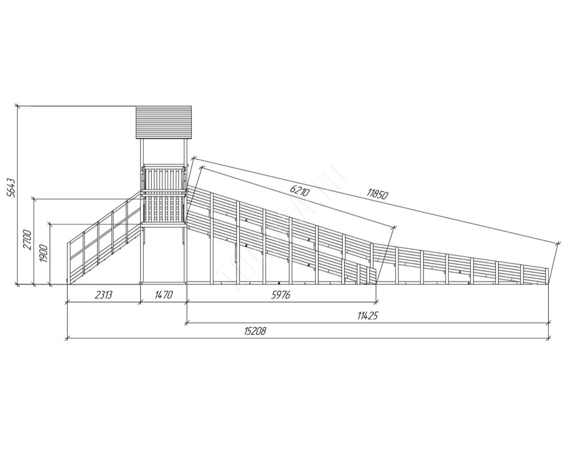 Каркас выполнен из прочного клеёного бруса камерной сушки, который не деформируется и выдерживает любые морозы. Все поверхности тщательно отшлифованы, углы скруглены, а крепежи закрыты защитными заглушками.