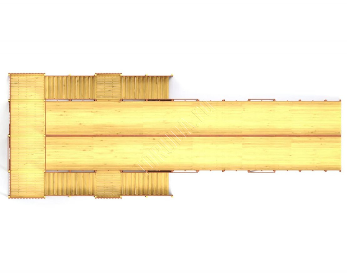 Каркас выполнен из клеёного бруса камерной сушки, все поверхности тщательно отшлифованы, углы скруглены, а крепежи закрыты заглушками.