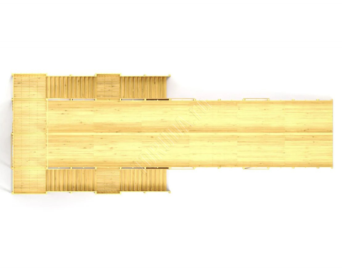 Каркас выполнен из клеёного бруса камерной сушки, все поверхности тщательно отшлифованы, углы скруглены, а крепежи закрыты заглушками.