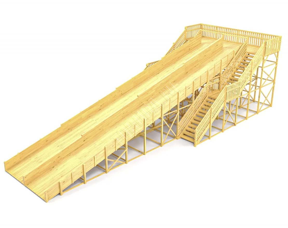 Зимняя горка — это настоящий центр зимних развлечений. Два ската длиной по 18 метров и широкие лестницы позволяют одновременно кататься целой компании детей.