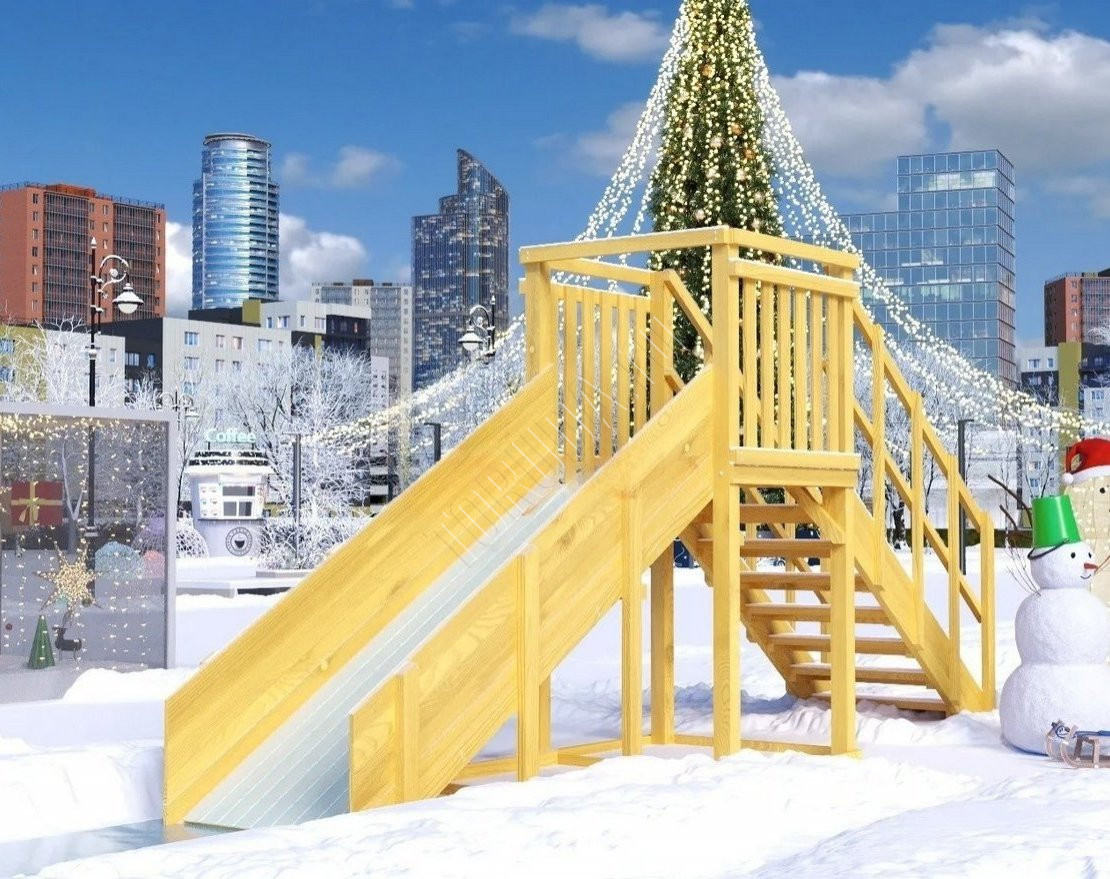 Играть на современной уличной зимней горке «TORUDA Север Wood»-2 ваши дети будут долго и с интересом. Это самый лучший способ провести время на свежем воздухе зимой.