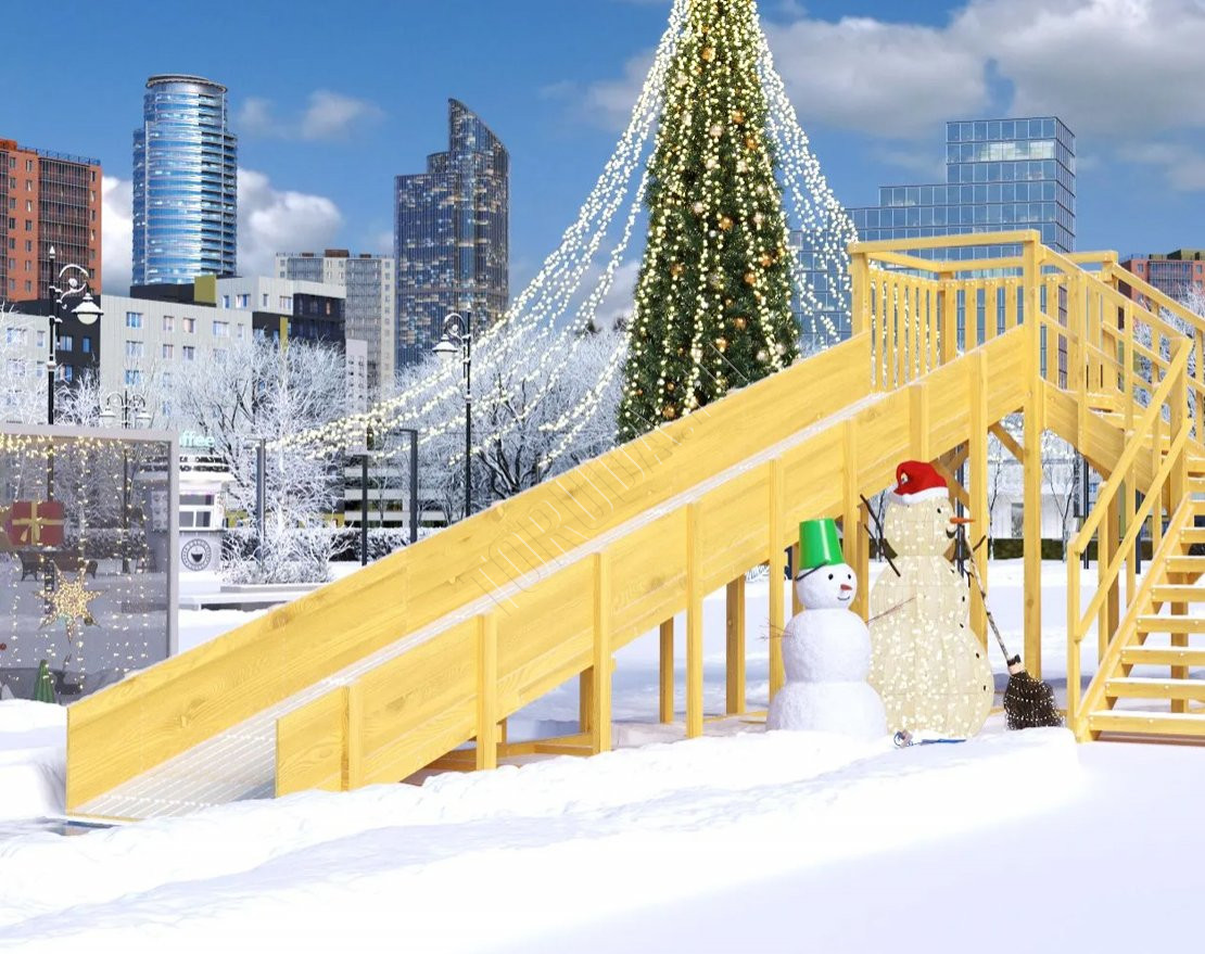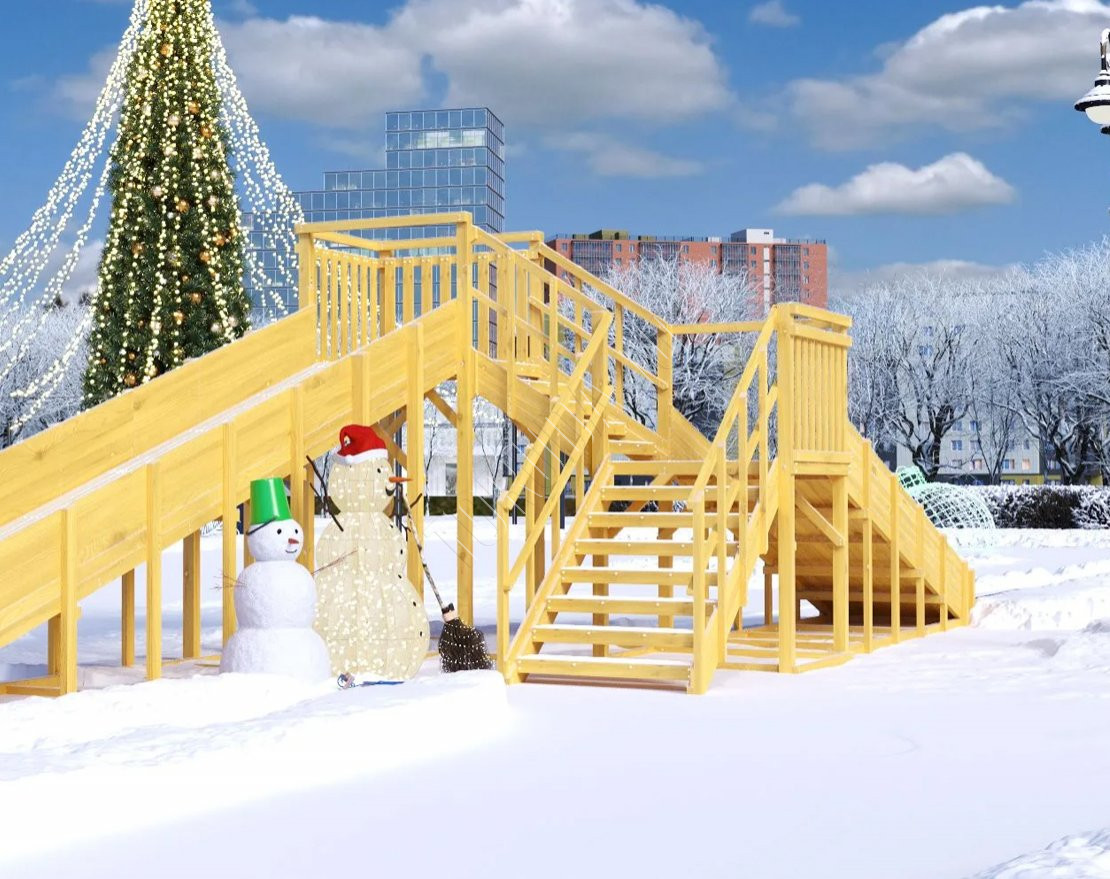 Зимняя горка создана для активных игр и катания всей компанией. Два ската разной высоты делают её универсальной: подходит и для малышей, и для подростков.