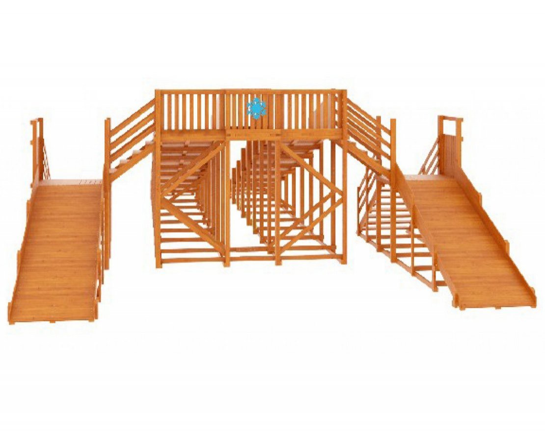 - Представленная деревянная горка отличается высоким уровнем функциональности. В своей комплектации она имеет два больших ската по 10,0 м – они предназначены для детей старшего возраста и взрослых. Два маленьких ската по 4,0 м – идеальны для детей дошкольного и младшего школьного возраста.