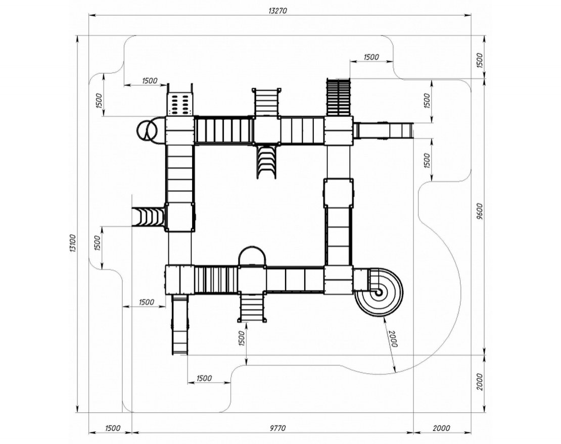 Отметка пола от планировочной отметки площадки 1200 мм. Башня со спиральной горкой -2000 мм (высота свободного падения 2000 мм).
