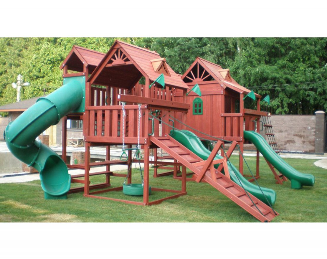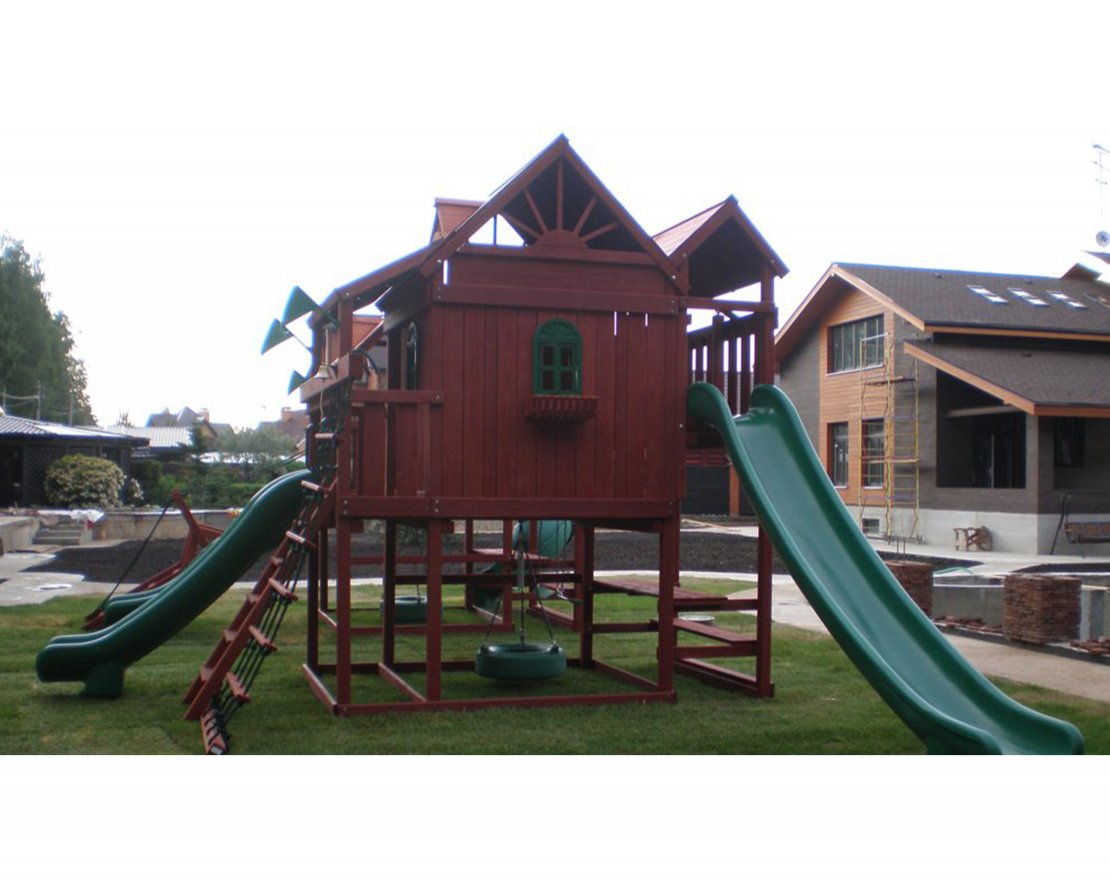Средневековый замок 1 станет настоящим украшением вашего загородного участка и подарит вам и вашим малышам массу положительных эмоций. Площадка предназначена для детей в возрасте от 3 до 11 лет. Материалы изготовления секвойя, кедр, туя, сосна с пропиткой на водной основе.