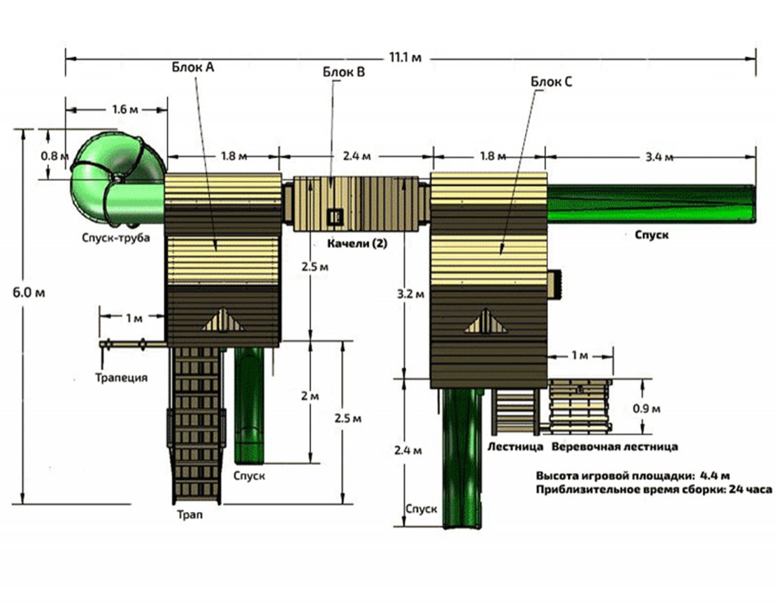 Детская игровая площадка Средневековый замок 1 была разработана специально для больших семей. Разнообразное игровое оборудование — от качелей до уютных домиков, от песочниц до горок — позволит вашим малышам и их друзьям организовывать любые игры и развлечения, проводить время на свежем воздухе интересно и с пользой.
