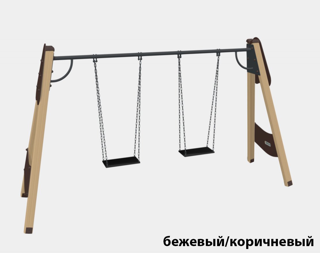 Качели подходят для детей младшего возраста. Они предназначены для установки на улице, имеют надёжный деревянный каркас и прорезиненные основания без спинки.