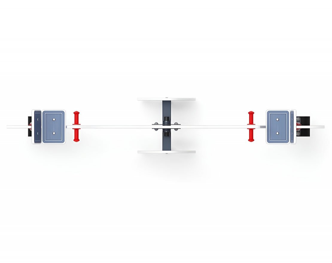 Балансир снабжен устройством, смягчающим удары о поверхность площадки, которое выполнен из ленты конвейерной, облегченной, толщиной 10 мм и шириной 110 мм, с прокладками в количестве 2 шт, плотностью не ниже 200 кг/см2, свернутая в форме кольца. Размер демпфера (диаметр): 130 мм.