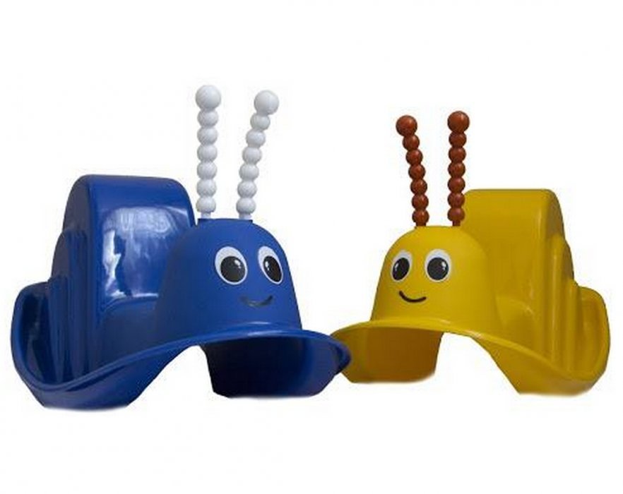 Качалка выполнена в оригинальном дизайне - милые глазки и усики, за которые можно держаться! Яркие цвета, которые привлекают внимание детей!