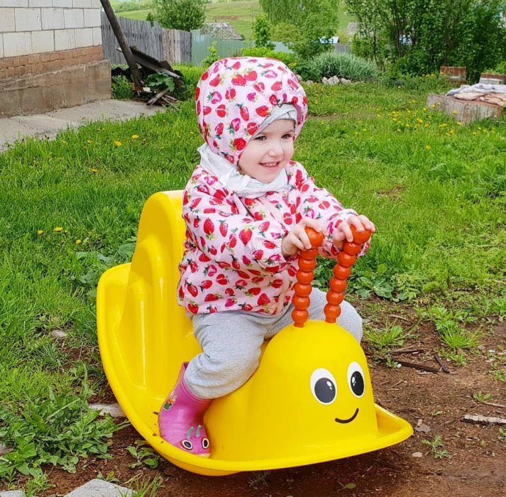 Качалка выполнена из качественного и безопасного пластика,который имеет защиту от выгорания на солнце и других климатических воздействий.