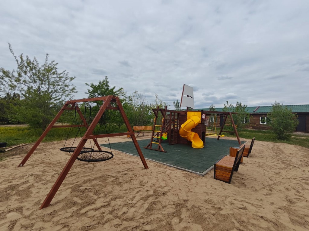 Детские игровые качели изготовлены из качественного дерева.
