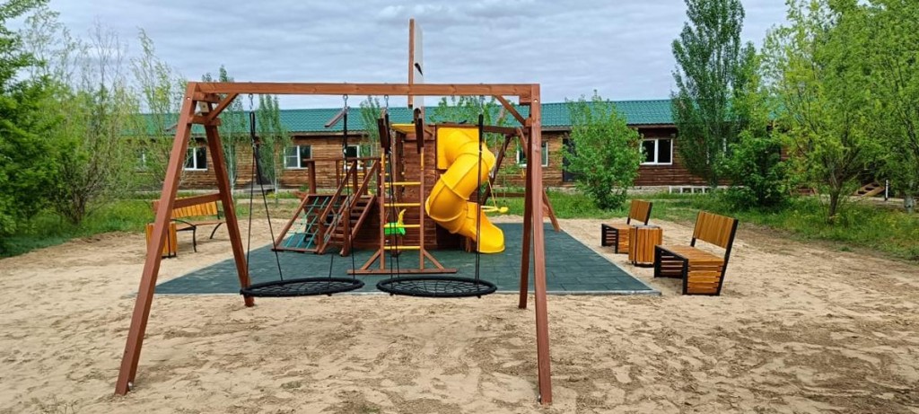 Игровые качели с легкостью устанавливаются на любой свободной от насаждений ровной территории.