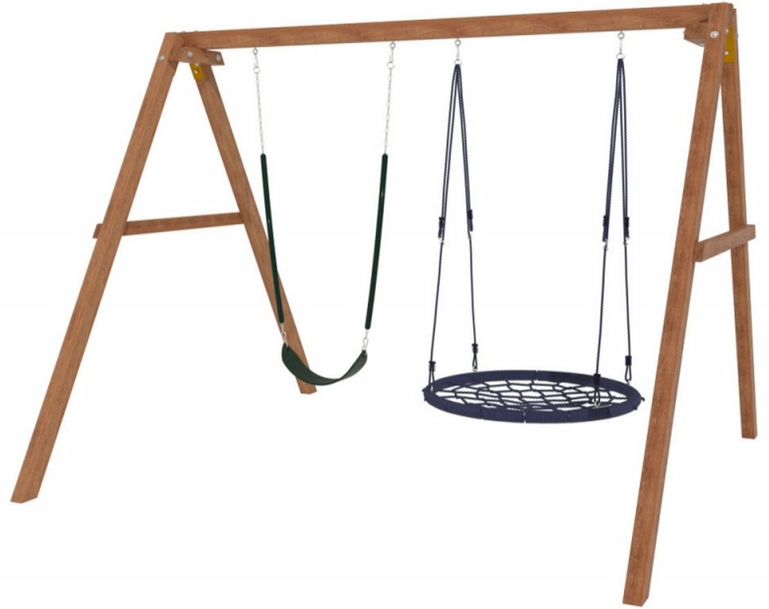 Детские игровые качели изготовлены из качественного дерева.